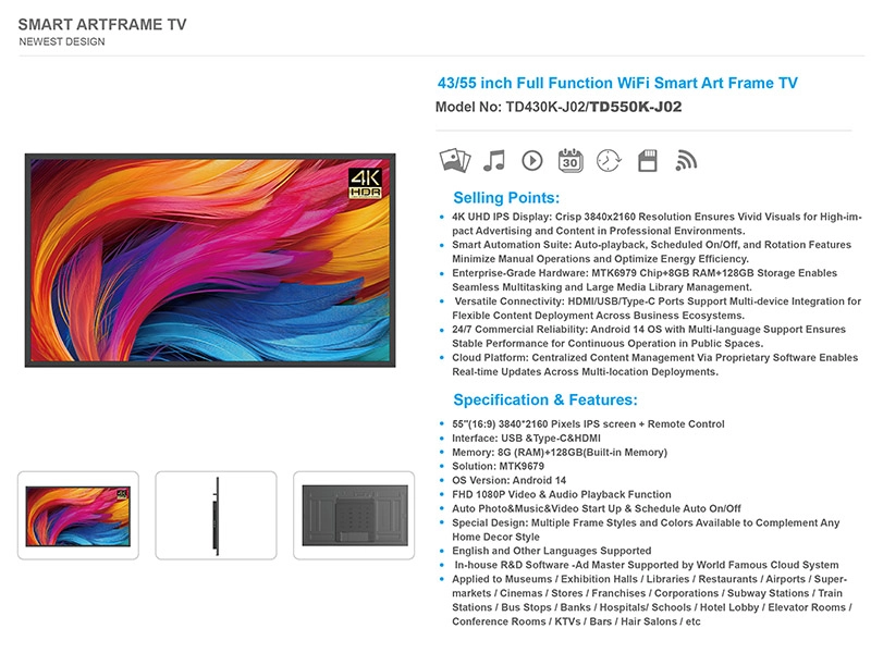 Meet our Smart Art Frame TV – a fusion of innovation, elegance, and performance designed to captivate your customers. As a trusted ODM partner, we empower your brand with premium technology and bespoke solutions.