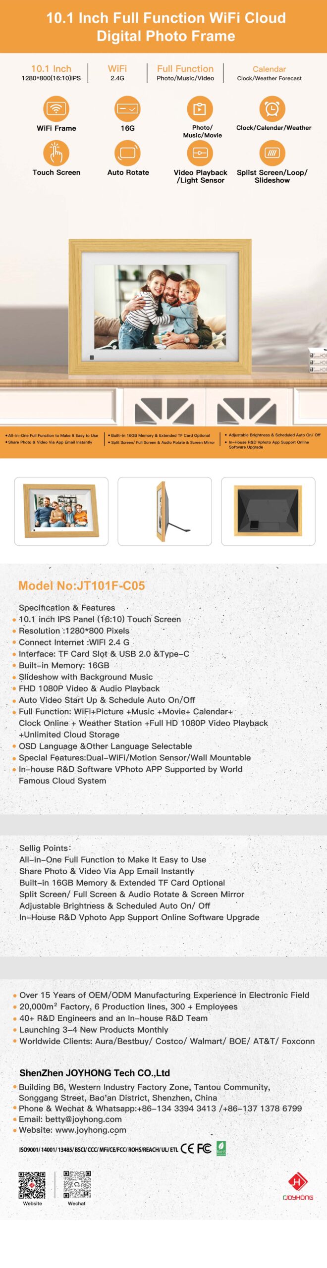 Be the first to review “10.1 Inch Android WiFi Cloud Digital Photo Frame (JT101F-C05)” Cancel reply