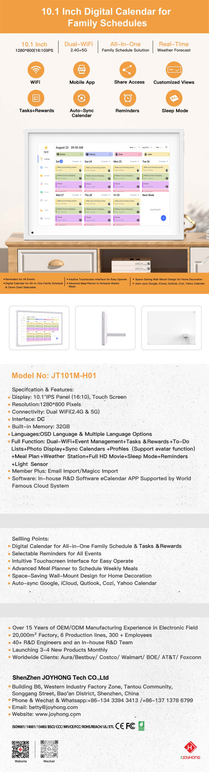 Be the first to review “10.1 Inch Full Function WiFi Cloud Digital Calendar Frame(JT101M-H01)” Cancel reply