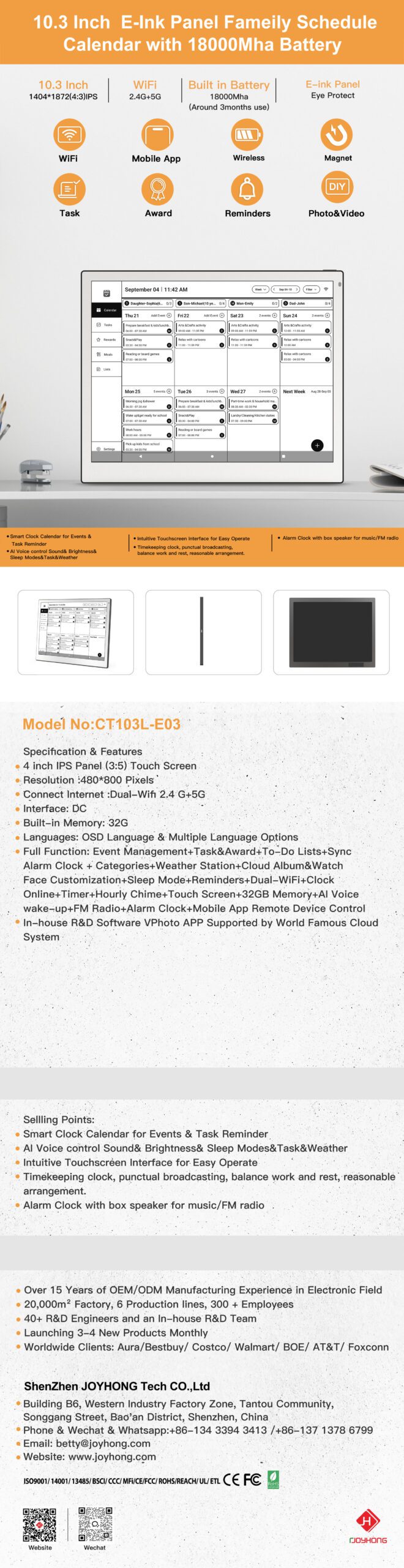 10.3 inch Muilty Function E-ink Panel Family Schedule Calendar Wireless with 18000Mha Battery(CT103L-E03)