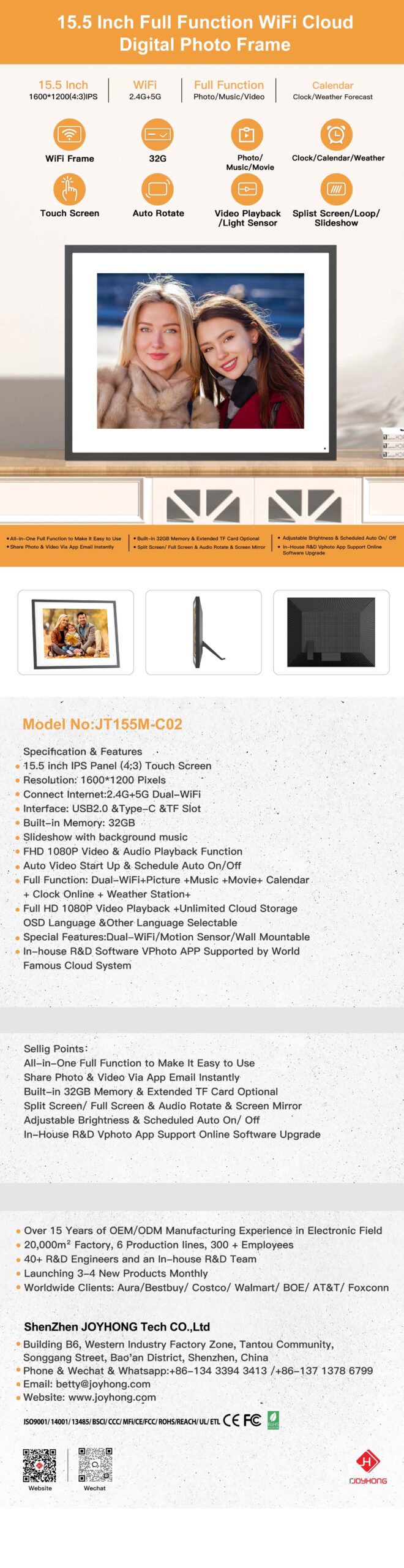 15.5 Inch Androdi WiFi Cloud Digital Photo Frame (JD155M-C02)