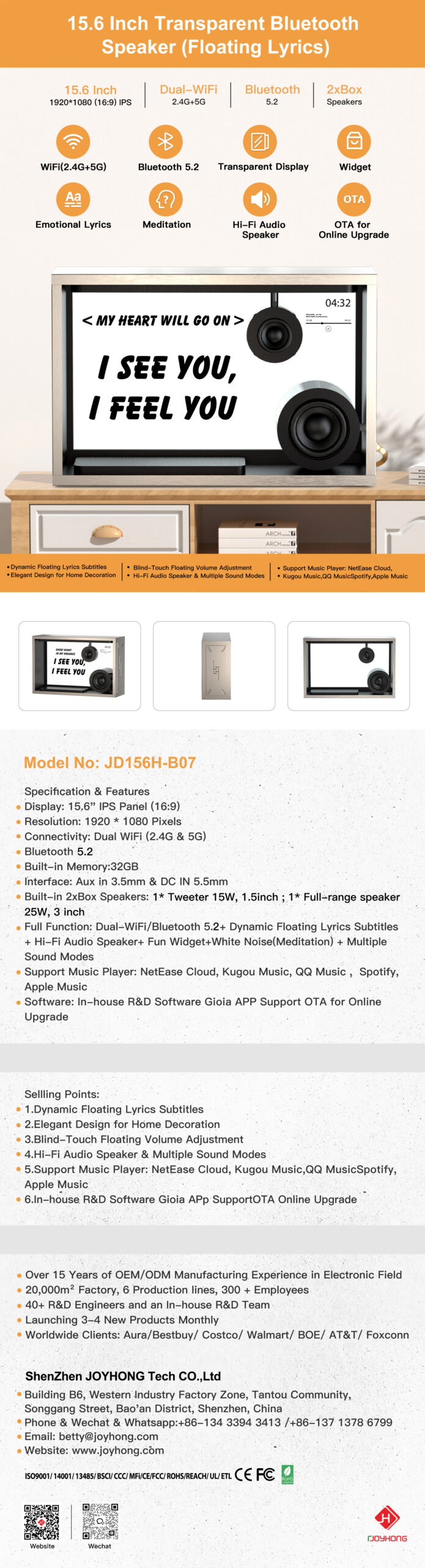 15.6 Inch Transparent Floating Lyrics Bluetooth Speaker(Floating Lyrics)(JD156H-B07)