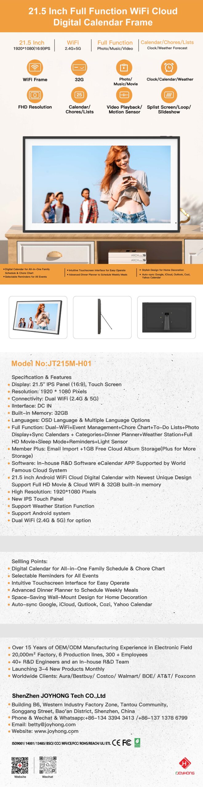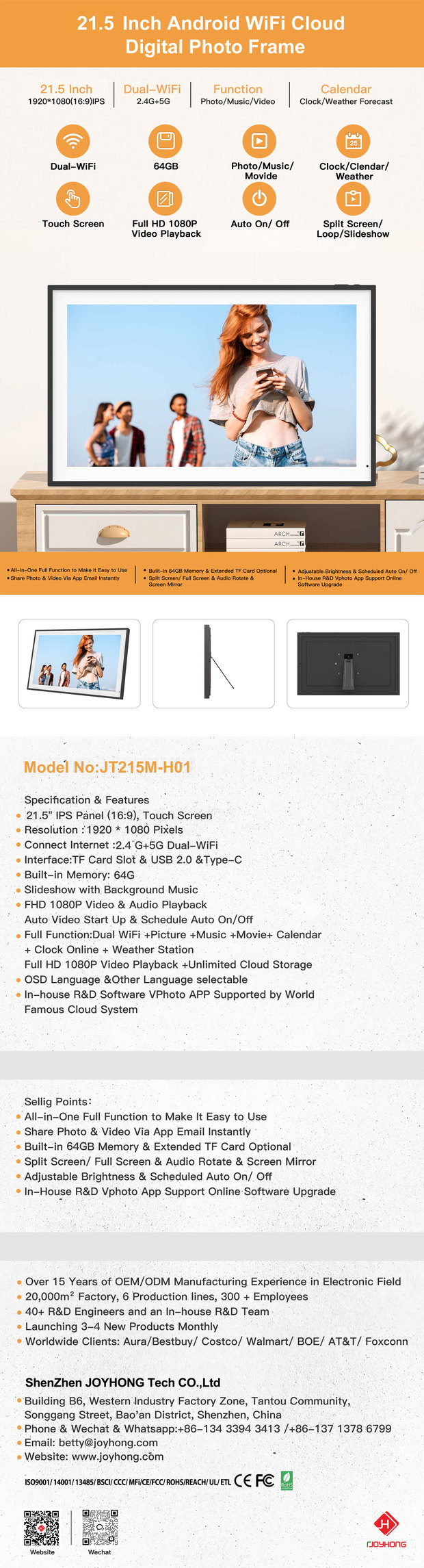 21.5 Inch Android WiFi Cloud Digital Photo Frame (JT215M-H01)