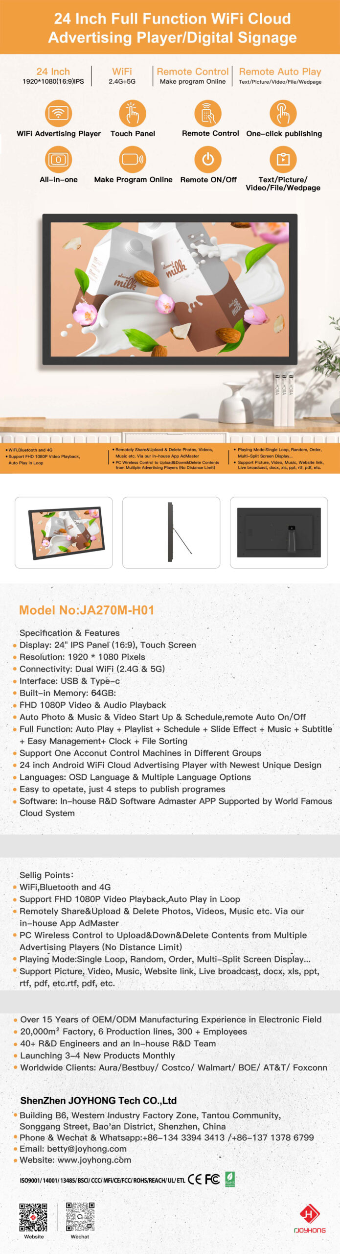 24 Inch All In One Advertising Player/Digital Signage ( Touch Screen / IPS 1920*1080 Pixels) (JA240M-H01)