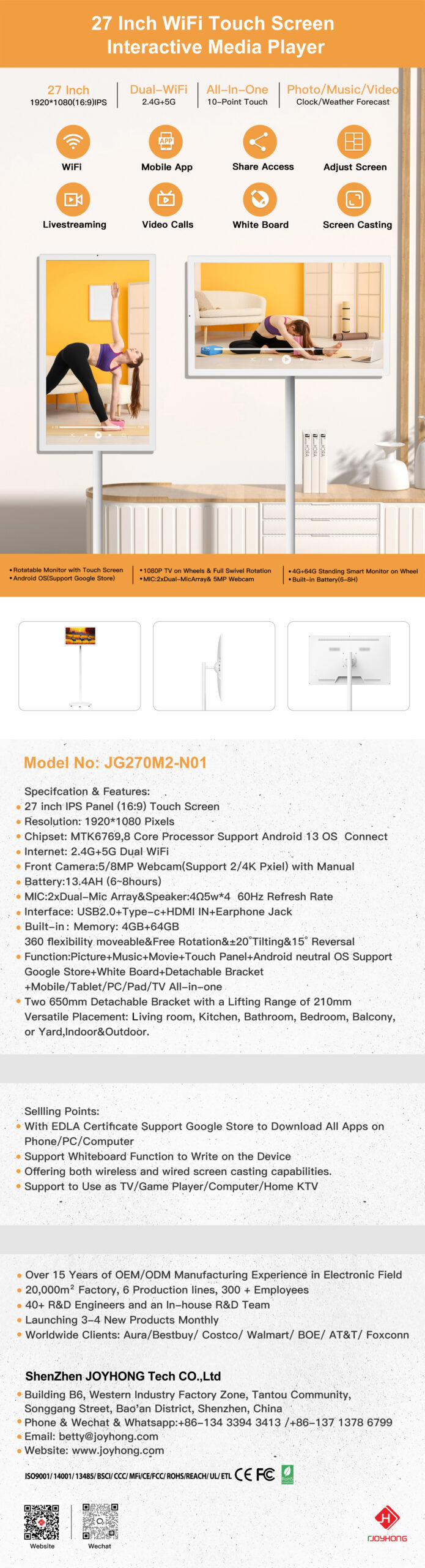 27 Inch DUAL-WIFI Interactive Display Media Player (JG270M2-N01)