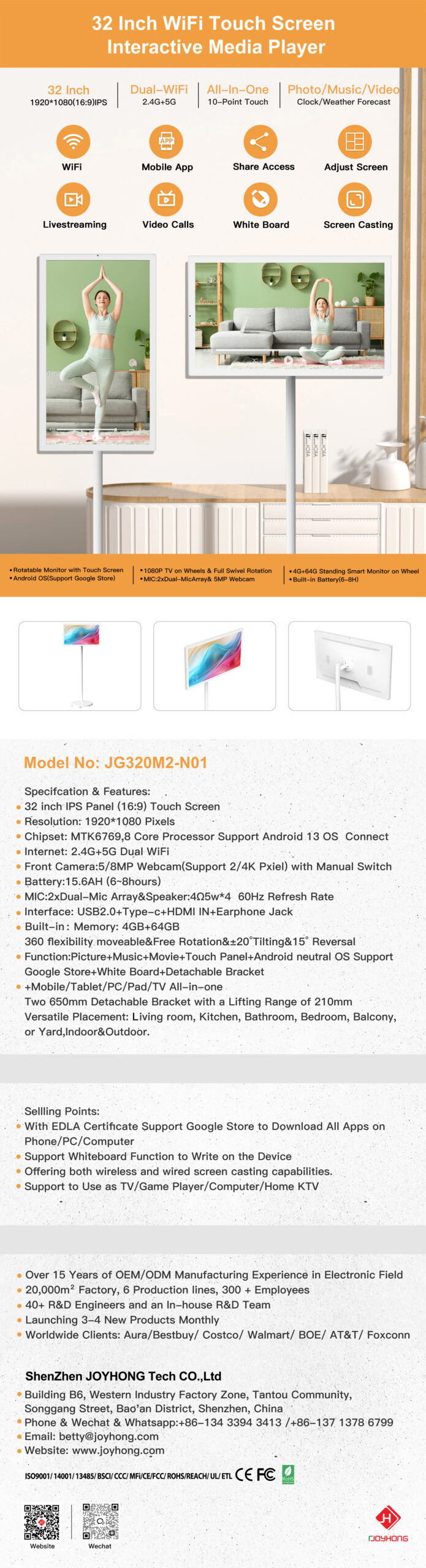 32 Inch DUAL-WIFI Interactive Display Media Player (JG320M2-N01)