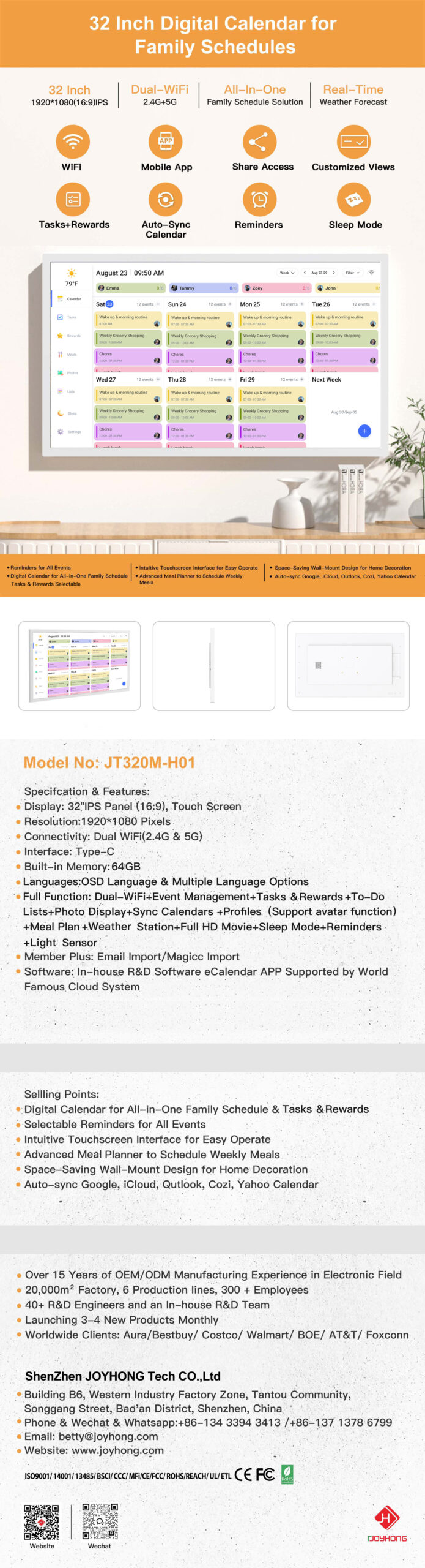 32 Inch Full Function WiFi Cloud Digital Calendar Frame(JT320M-H01)