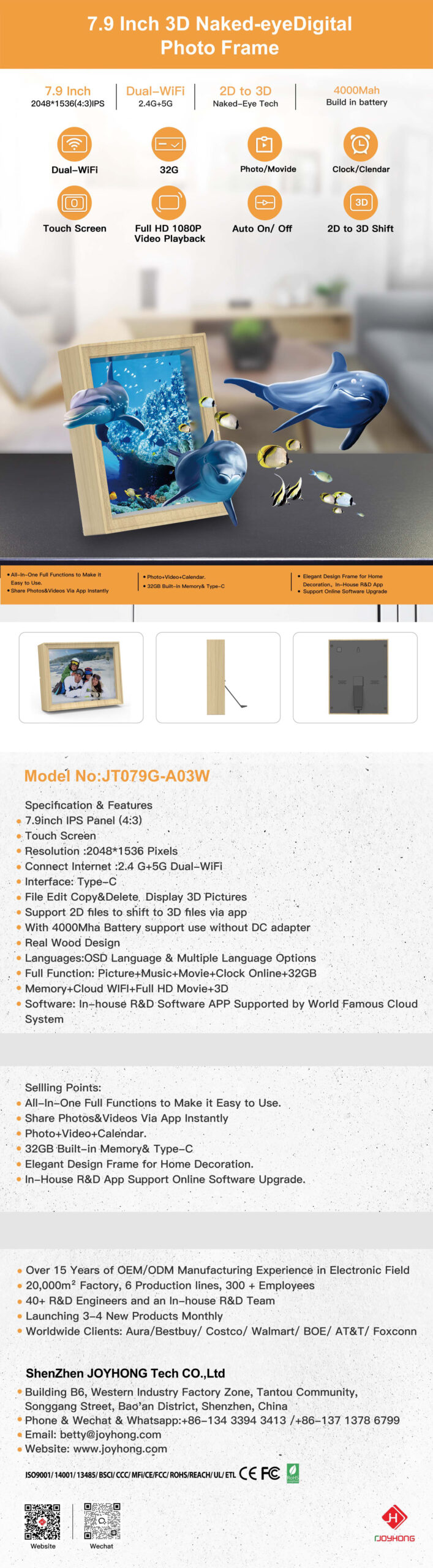 7.9 Inch 2D to 3D WiFi Digital Photo Frame(JT079G-A03W)